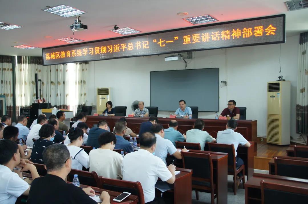 会上,局党委(党组)书记、局长任飞鹏就推动全区教育系统学习宣传贯彻习近平总书记“七一”重要讲话精神落地见效时指出,要迅速兴起“七一”重要讲话精神学习宣传贯彻热潮,将其作为教育系统当前和今后一个时期一项重大政治任务。要引导教育系统广大党员干部和师生切实把思想和行动统一到讲话精神上来,立足落实立德树人根本任务,把学习“七一”重要讲话与推进我区当前教育重点工作紧密结合起来,着力解决群众及师生急难愁盼的教育问题,切实将学习成果转化为推动各项工作的强大动力。