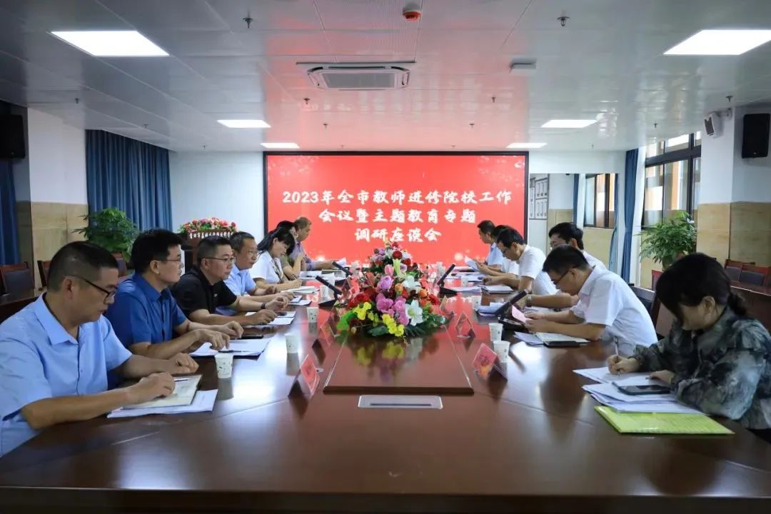 为推动学习贯彻习近平新时代中国特色社会主义思想主题教育走深走实,提升全市教科研和教师发展工作水平,日前,2023年全市教师进修院校工作会议暨主题教育专题调研座谈会在我区教师进修学校召开。县区教师进修学校校长及相关人员参加,市教师进修学院党委书记、院长柯健俊,副院长李德煌、陈国文出席。
