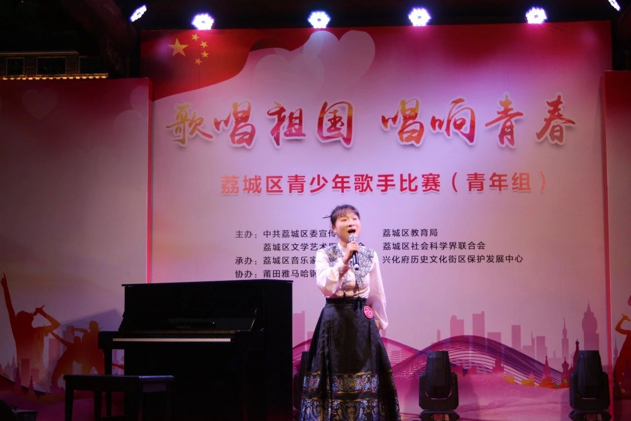 12月14日,荔城区“歌唱祖国 唱响青春”青少年歌手比赛(青年组)在兴化府历史文化街区崇功祠激情唱响,来自全区的40名青年音乐教师齐聚一堂,用歌声抒发对祖国的热爱与青春的豪情。