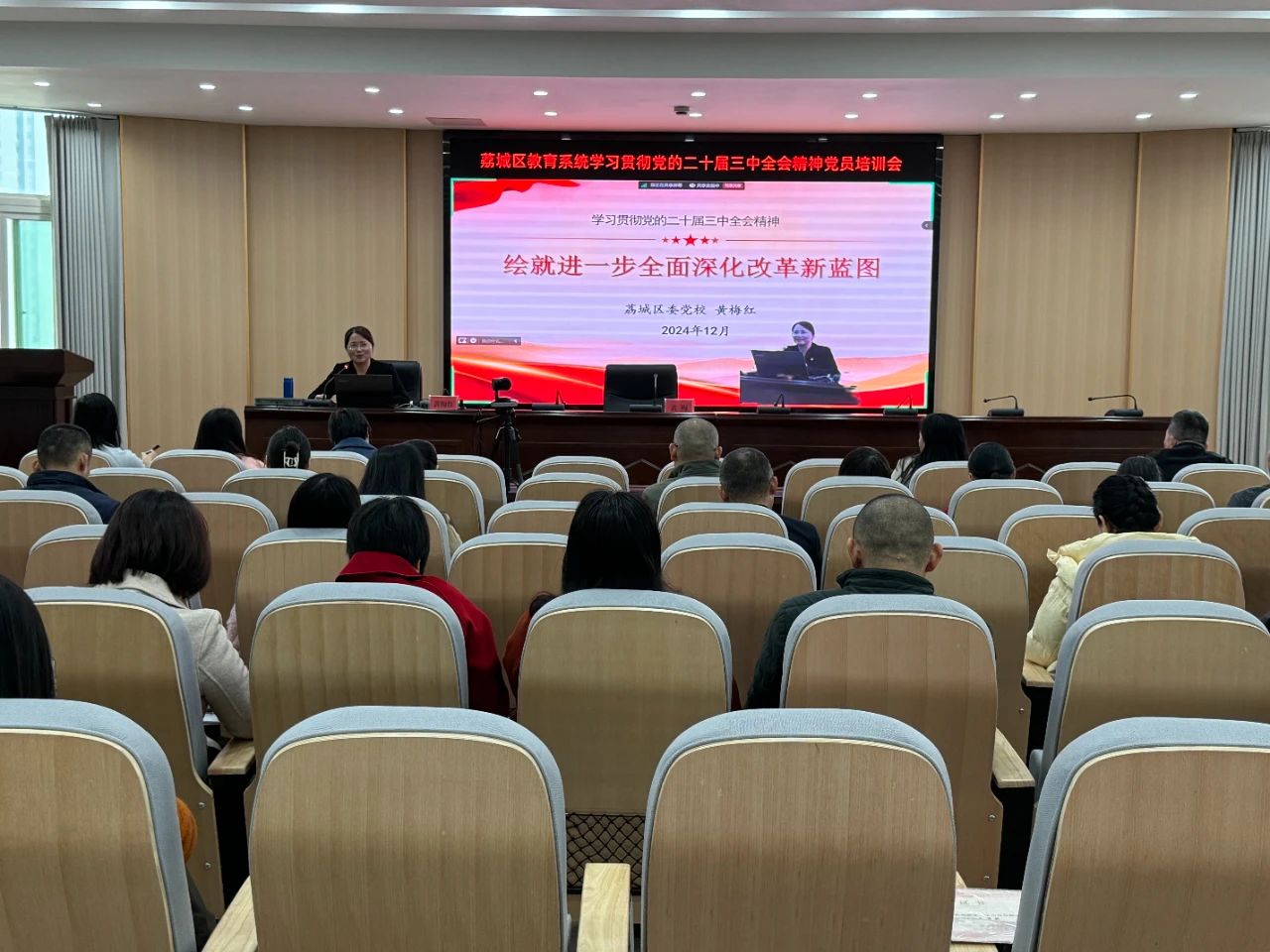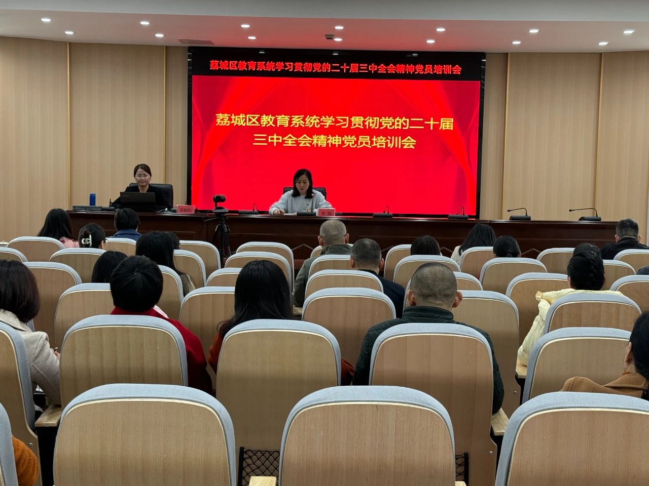 为深入学习贯彻习近平新时代中国特色社会主义思想,全面贯彻落实党的二十届三中全会精神和全国教育大会精神,不断提升全区教育系统党员教师的政治素养、理论水平和业务本领,夯实基层党组织建设基础,提高党组织建设规范化水平,推动学校党建高质量发展,12月25日至12月27日,荔城区教育系统举办学习贯彻党的二十届三中全会精神专题培训班。 本次培训班采取“线上+线下”形式进行,主会场设在区教育局十二楼会议室,各学校党支部同步设置分会场,以专题辅导报告、分组学习讨论、研读原著原文、交流发言等方式进行。