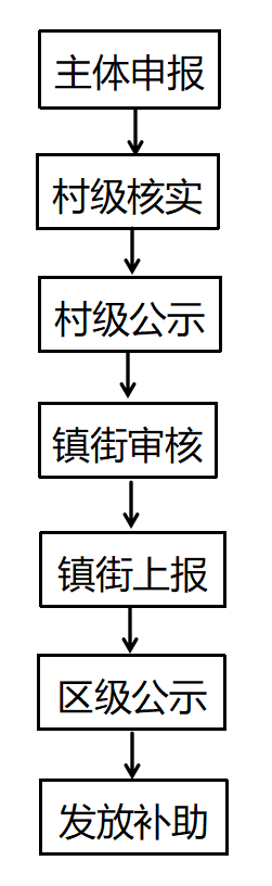 按照“主体自主申报、村级核实公示、镇街汇总审核、区级资金拨付”的流程进行。