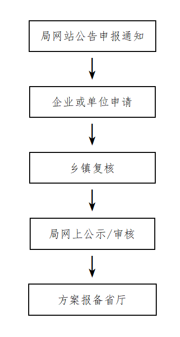 按照“局网站公告申报通知、企业或单位申请、乡镇复核、局网上公示/审核、方案报备省厅”的流程进行。