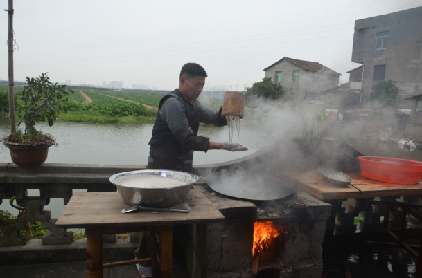 泗粉经历了龙花人走街串巷沿街叫卖的时光,在肩挑扁担的吆喝声中,孩提们从家中拿着瓷碗奔去,从老汉手中接过满满的一碗加香椿油冒着腾腾香气的泗粉,这一幕不知存在于多少莆田人的儿时记忆中。龙花担泗粉已经成为莆田传统担子文化的代表,有序着传承泗粉的制作技艺,也保留着老莆田传统担子小吃的原汁原味,是莆田著名的传统小吃。