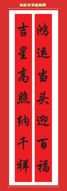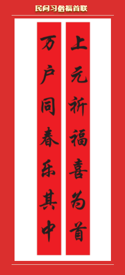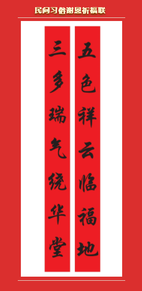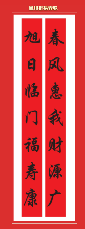 红红的春联,传递着“和谐”、“共享”、“欢乐”、“家国”的理念和情怀,展示了社会和谐、人民幸福的良好面貌,表达了劳动人民辞旧迎新、辟邪除灾、迎祥纳福的美好愿望,营造出了祥和、喜庆、热闹的节日氛围,寄寓着人们对幸福生活的憧憬和向往。