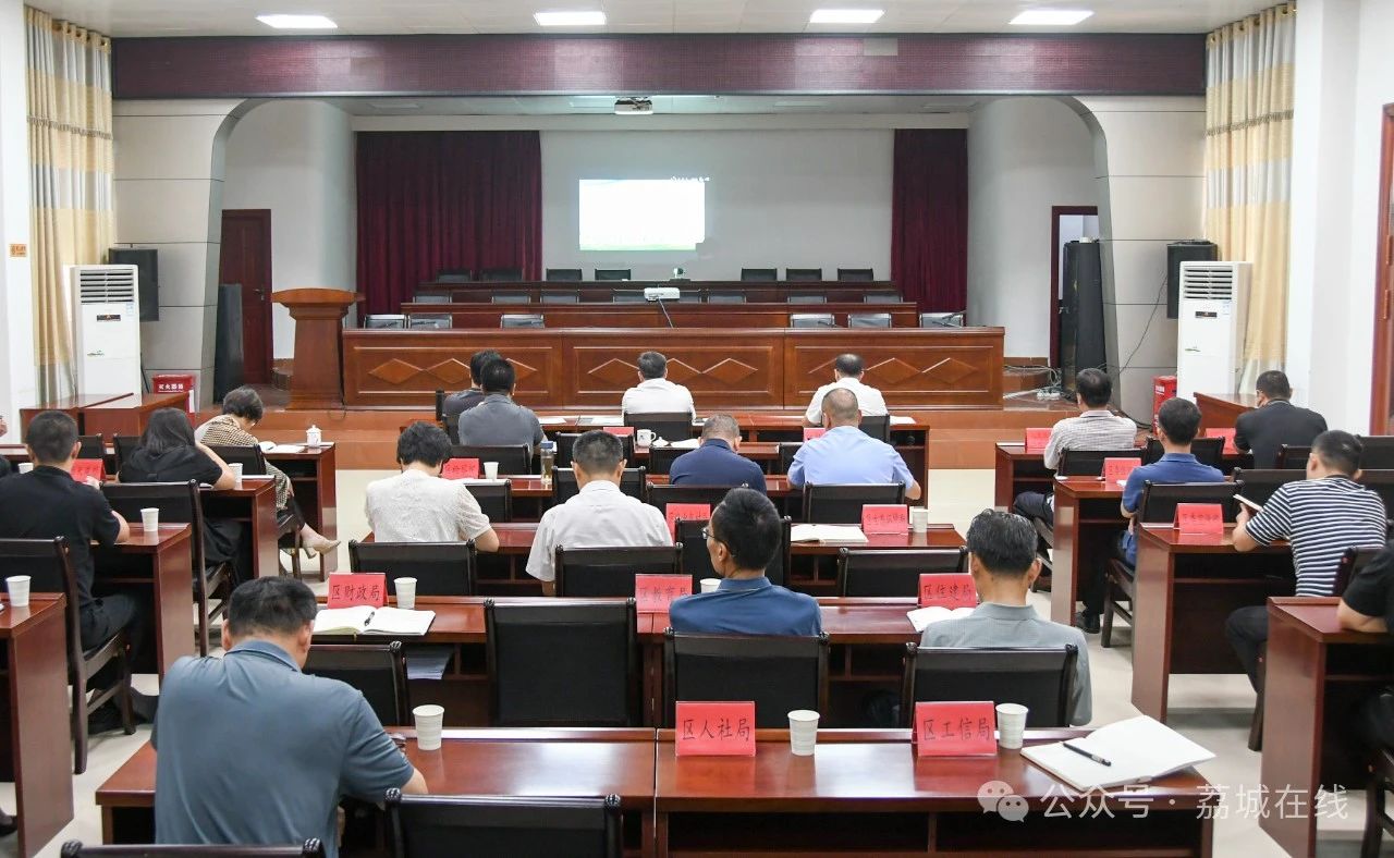 会议以视频形式召开。区领导杨兴斌、刘基棠、沈堂明、郑占林、王成志、姚珊珊、胡志坚、陈志华等在荔城分会场收听收看。