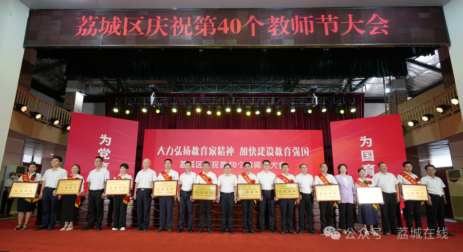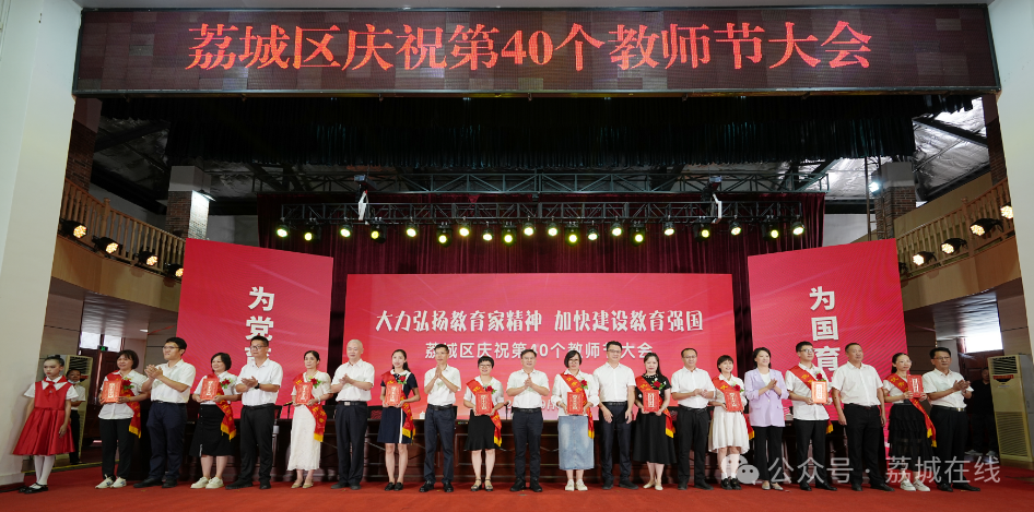 会议现场对10个“荔城区教育强区建设先进集体”、45名“荔城区优秀教师”、15名“荔城区优秀教育工作者”进行表扬。优秀教师、优秀教育工作者代表先后上台发言。