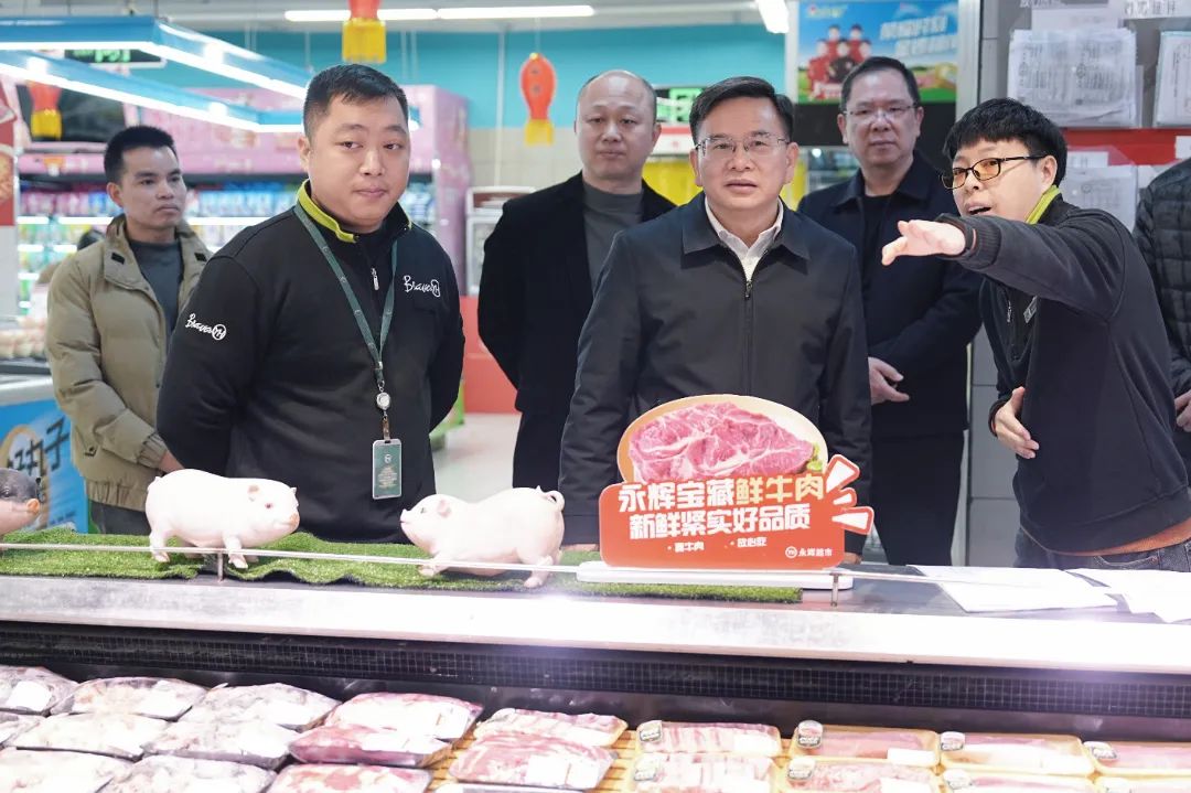 在永辉超市馨宜新天地店,杨兴斌详细察看肉类、百货等节日热销商品价格变化、食品安全监测以及消防安全管理措施落实情况等,杨兴斌强调,春节是消费旺季,要坚决守牢食品安全底线,加强对食品货源、储存、运输等环节的全链条管理,确保节日期间市场货丰价稳、群众消费安全舒心。