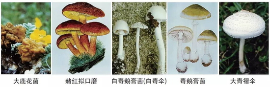 我国毒蘑菇有100多种,常见的可致人死亡至少有10种,如褐鳞小伞、肉褐鳞小伞、白毒伞、褐柄白毒伞、毒伞、残托斑毒伞、毒粉褶蕈、秋生盔孢伞、包脚黑褶伞、鹿花蕈等。