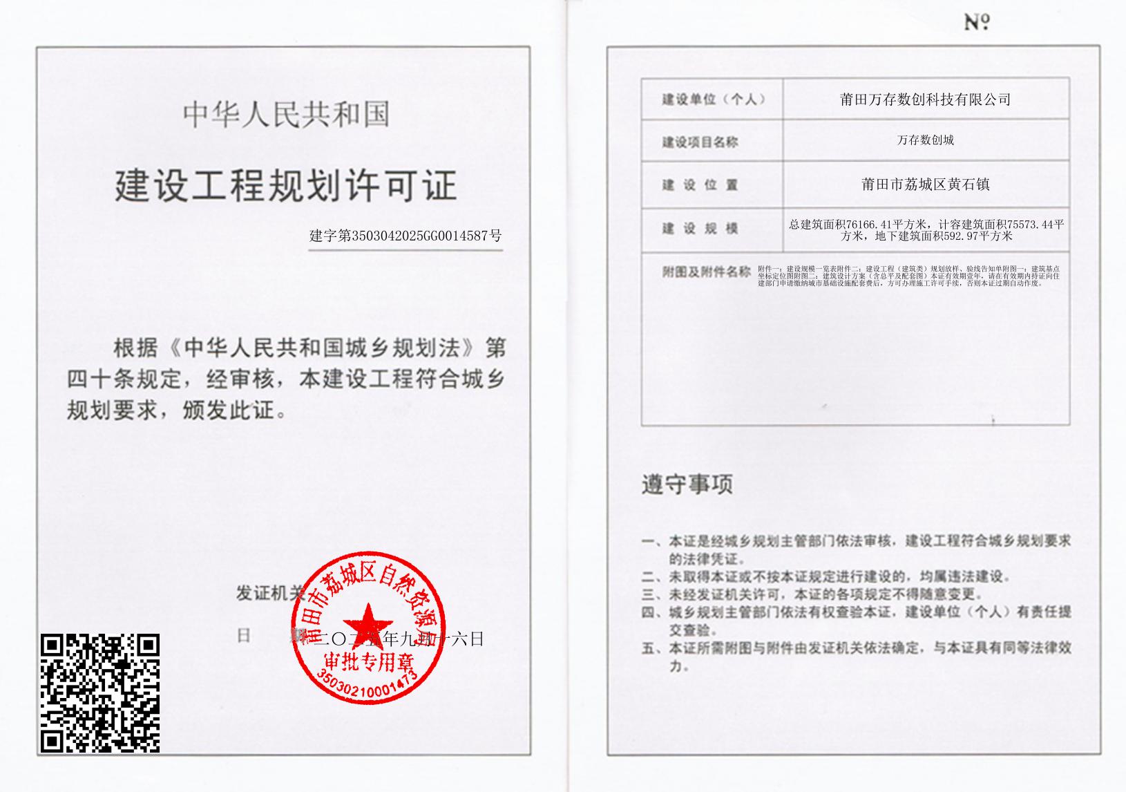 | 3 | 莆田万存数创科技有限公司 | 万存数创城 | 建设工程规划许可证 | 2025/9/15 | 建字第3503042025GG0014587号 |