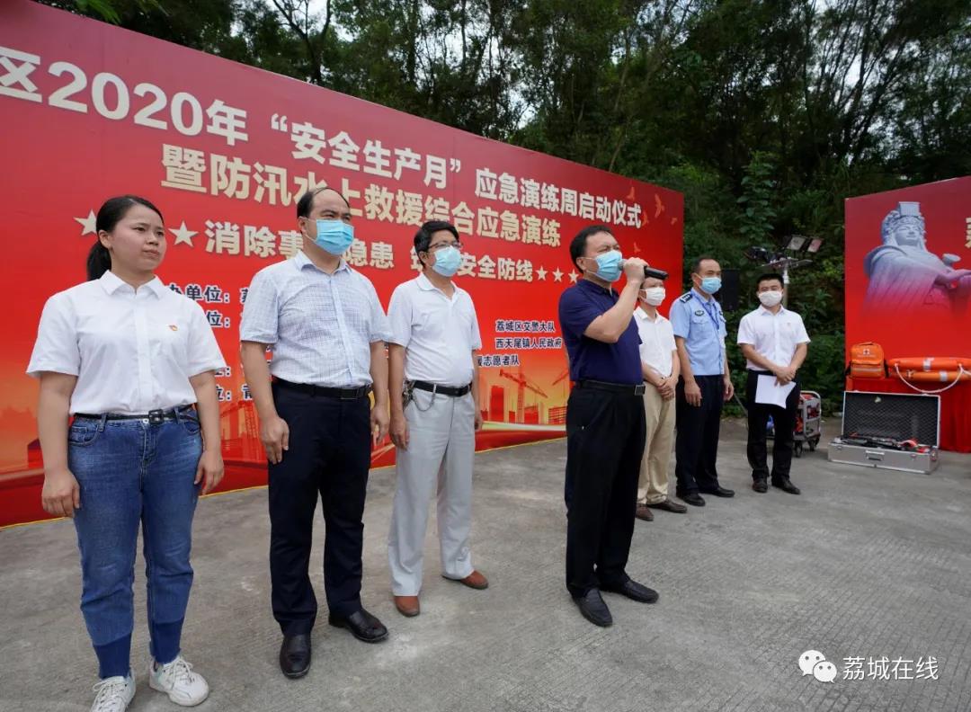 为做好今年汛期防汛抢险救灾工作,提高防汛抢险队伍的抢险处置能力,6月23日,荔城区在西天尾镇石盘水库举行2020年“安全生产月”应急演练周启动仪式。区委常委、常务副区长郑群星参加。